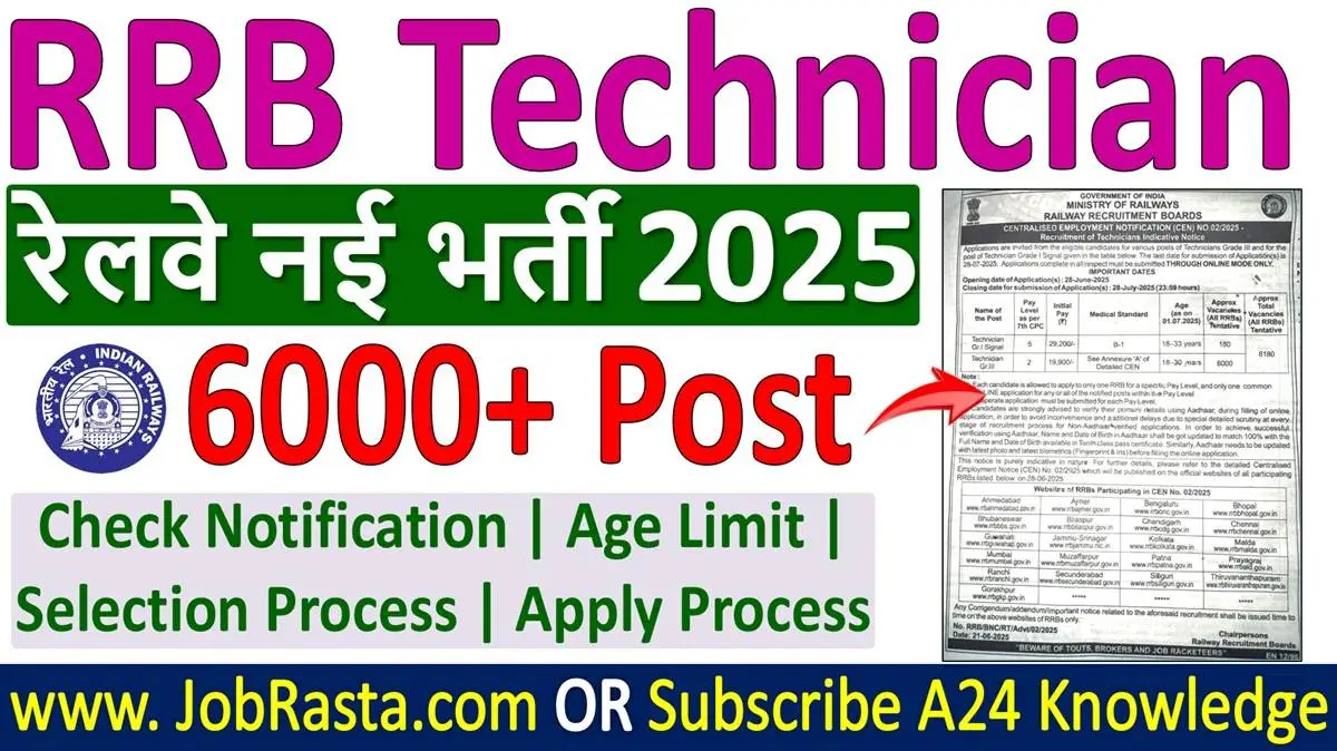 H 1. रेलवे भर्ती बोर्ड (RRB) ने 2025 में टेक्नीशियन के कुल 6,238 पदों के लिए भर्ती (RRB Technician Recruitment 2025) की आधिकारिक सूचना. जारी कर दी है। इसमें Technician Grade I (Signal) और Technician Grade III दोनों श्रेणियों के पद शामिल हैं। नीचे आपको सम्पूर्ण जानकारी मिलेगी